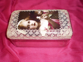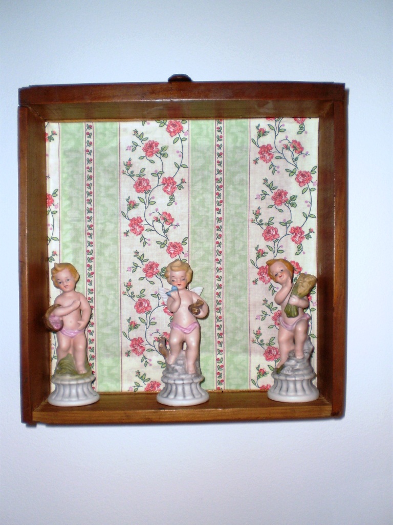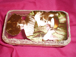 | Resolvi aproveitar a gavetinha, forrei com um tecido Vintage, coloquei um apoio na parte de trás e... |