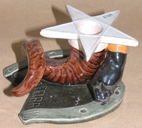 | Este foi o único que encontrei na Net, muito parecido, pertençente ao espólio do Museu Nacional de Arqueologia, além dos elementos anteriores este tem na ferradura a inscrição "sexta-feira 13". |