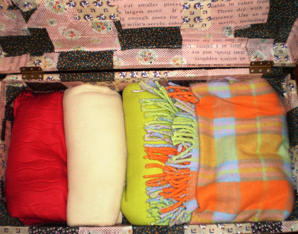E agora serve para guardar as pequenas mantinhas de Inverno quando não estão em uso! Que tal? Parece que afinal deitamos coisas fora que ainda têm muita vida pela frente!