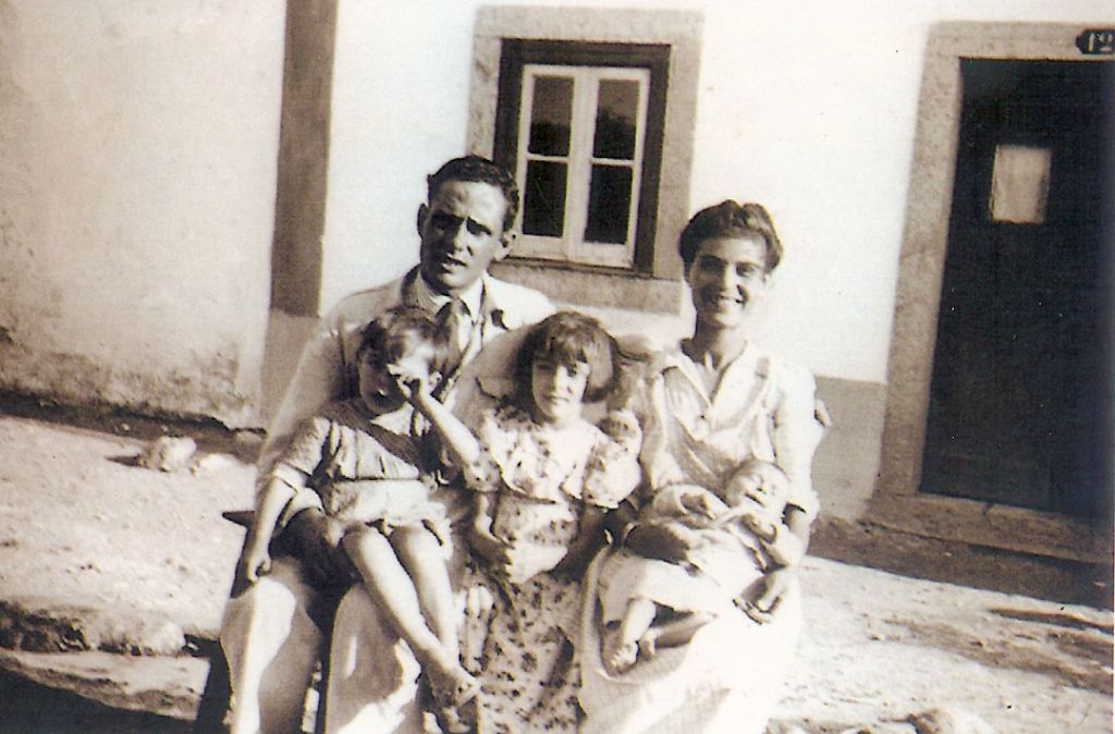 Familia Ferreira Gomes, a minha avó Simone Ferreira e o meu avô Eduardo Gomes com os meus tios: Manuel, Rosinda e a pequenina Modesta, já concebida no ventre da minha avó estava a minha mãe.